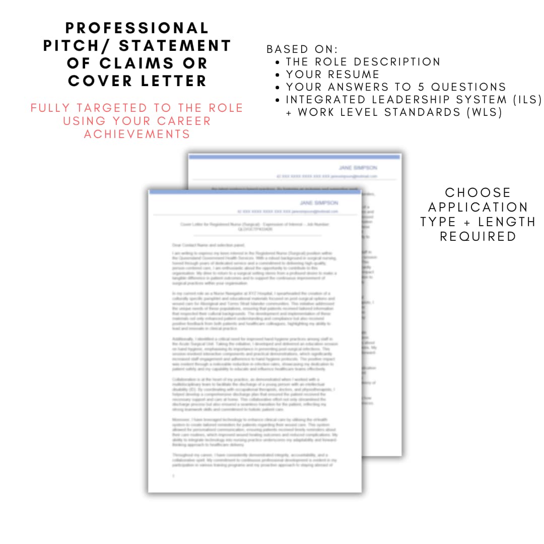 A professionally written selection criteria response / pitch / cover letter—customised to the job requirements